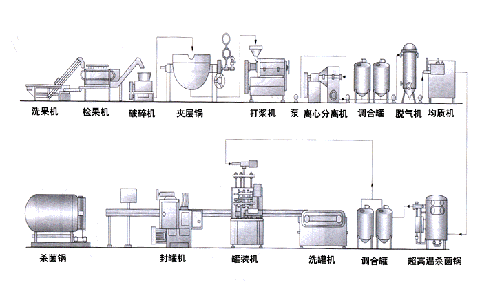 預處理→榨汁→稀釋、調配→殺菌→無菌灌裝(熱灌裝)→燈檢→成品